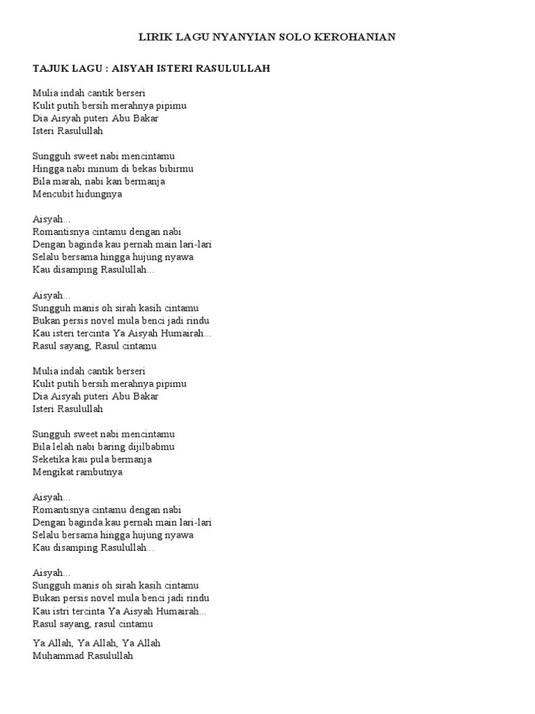 Isyfa'lana lana lana ya habibana laka syafa'ah ya rasulullah, ya ya . Ya rasulullah ya ya nabi, laka syafa'ah wa hadza matlabi ya nabi. Kemudian memiliki arti wahai nabi, salam sejahtera untukmu. Menyajikan rekomendasi lirik lagu, chord, dan segudang artikel dari. Yâ rosûlallâh, yâ yâ nabî ; Ya rasulullah ya ya nabi.